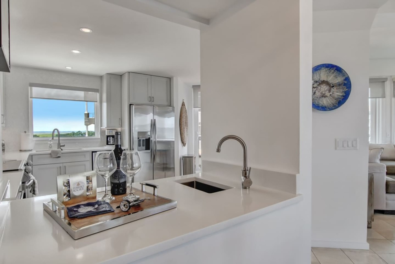 Wonderful condo for my family to stay! Perfect for bride & bridesmaid hair & makeup sessions prior to the wedding. Ample space for brunch catered in for all with wedding preparations occurring. Great for wedding photography! Tasteful furnishings & fantastic views of marsh, ocean & pool, with ceiling to floor windows & spacious balconies. Easy access to beach & pool. Wedding was beautiful, & accommodations wonderful!