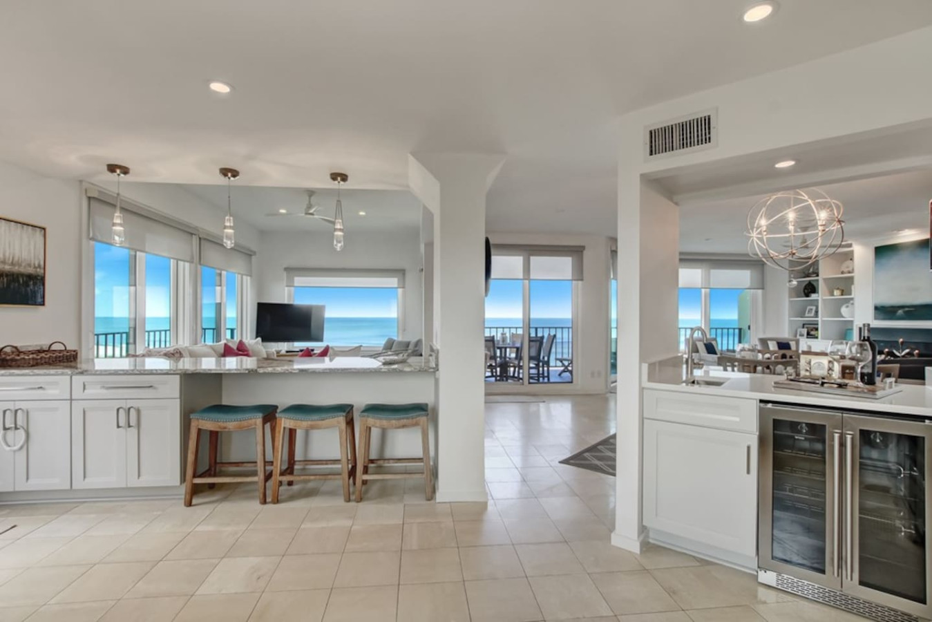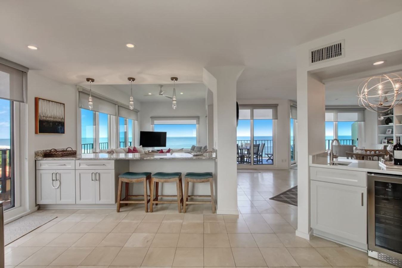 When we arrived we were all blown away because the home exceeded our expectations. This penthouse is very well appointed. The furnishings are upper end brands, the beds are very comfortable, the decor is beautiful, and because it is an end unit the views from all rooms cannot be matched. My husband and I woke up every morning to see nothing but beautiful blue ocean and a peaceful white beach. The bathrooms are large in every bedroom and there is ample close space. Top of the line LG washer and dryer, and a well appointed kitchen. Our family loved our stay and we plan to visit again in the future. I would highly recommend this property for anyone looking for a beautiful, spacious vacation home. You will not be disappointed! If for some reason this property does not fit your needs, I would still highly recommend connecting with Laily Schlegel. What a pleasure she is to work with and I'm sure she can connect you with the right property!